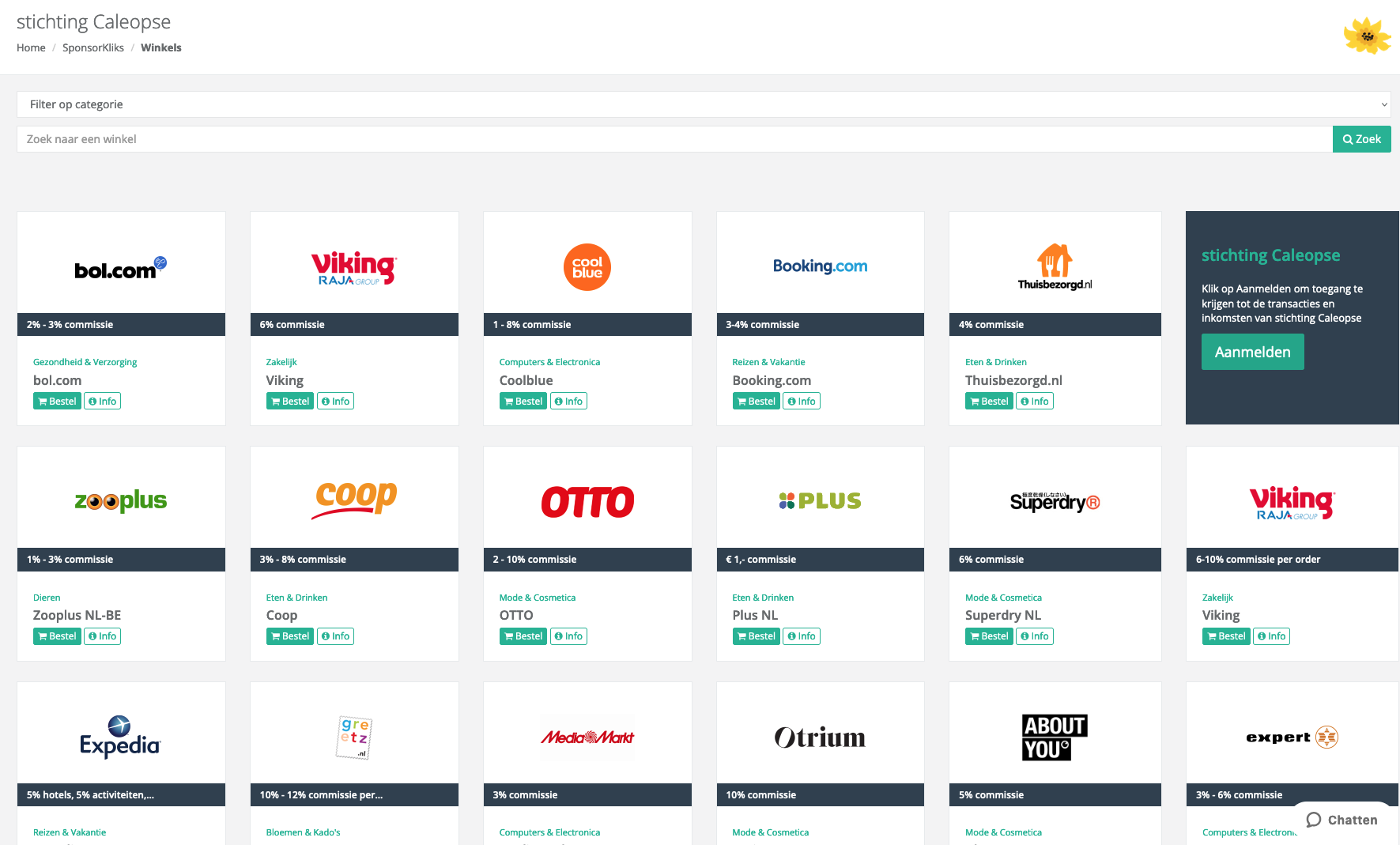 Wanneer je winkelt via sponsorkliks, dan gaat er commissie naar stichting Caleopse.